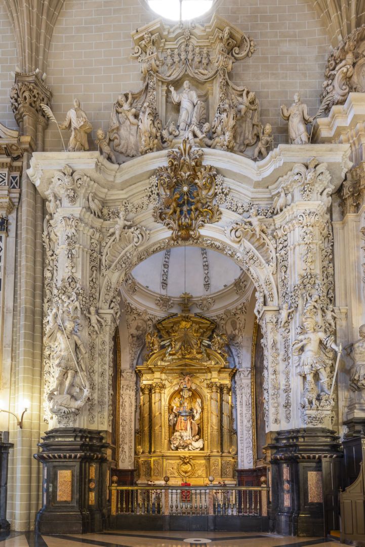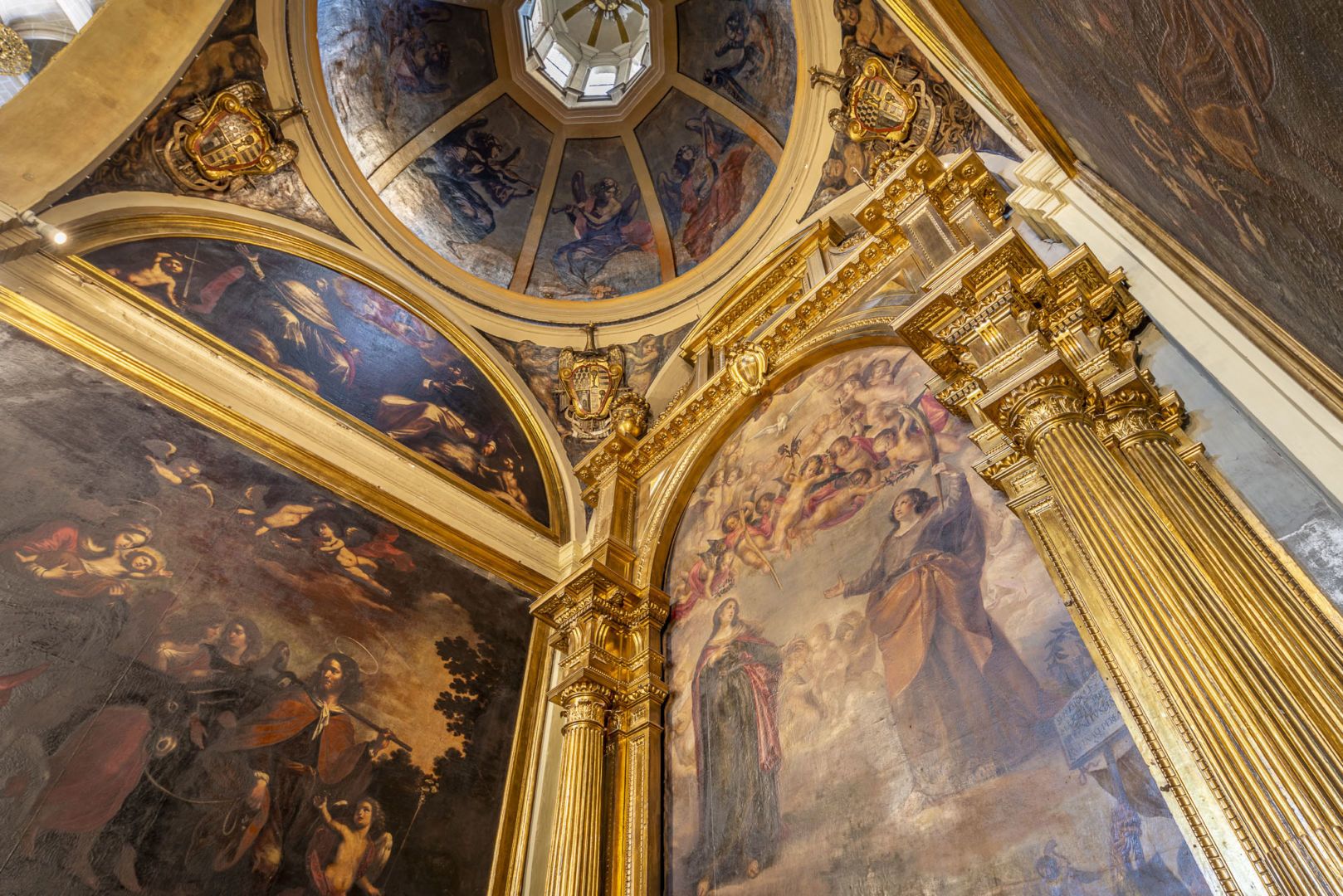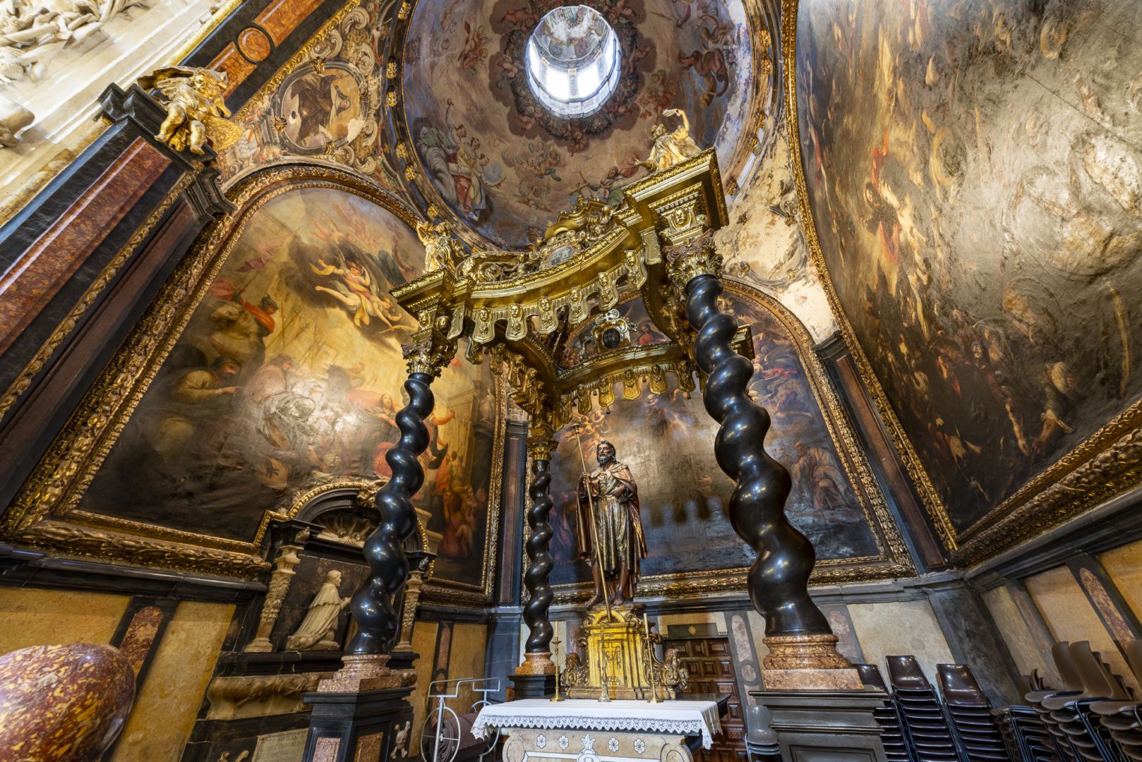 Llama también la atención el baldaquino barroco de columnas salomónicas, inspirado en el de la Basílica de San Pedro del Vaticano.
