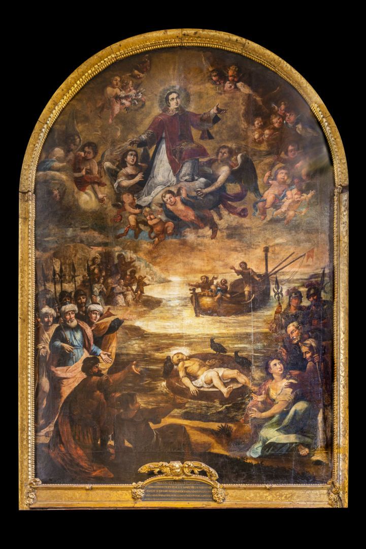 En los muros, se pueden observar dos pinturas sobre el juicio y condena de San Vicente, y su martirio.